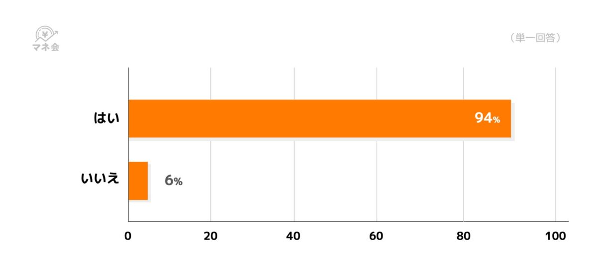 今回の調査に参加した262名のクレジットカード申込者のうち、「はい」と回答した方は94%(247人)で、多くの専業主婦がクレジットカードを活用していることが判明しました。