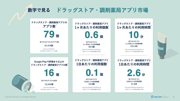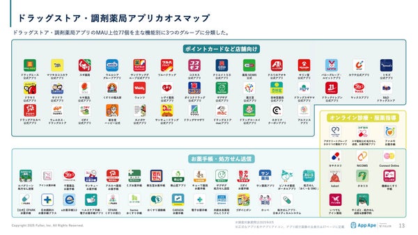 フラー株式会社(本社:新潟県新潟市、代表取締役社長:山﨑将司)が、アプリ市場分析サービス「App Ape(アップ・エイプ)」のデータを活用した「ドラッグストア・調剤薬局アプリ市場調査レポート2025」を公開しました。このレポートでは、ドラッグストア・調剤薬局アプリ市場を多角的な視点から分析し、購買・調剤・服薬管理におけるデジタル活用の実態を可視化しています。