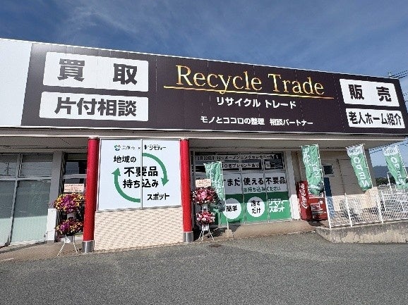 リユース業を20年営んできた北九州商店が、リサイクルショップ併設型の「ジモティースポット宗像」を10月30日にオープンしました。併設するリサイクルショップ「リサイクルトレード」では「ジモティースポット」で取り扱いのないリサイクル家電や大型家具なども販売されています。また出張引き取りの相談窓口や、ブランド品や貴金属、金券、お酒の買取カウンターもあり、「売る」から「譲る」までを同一拠点で行えるスポットとなっています。