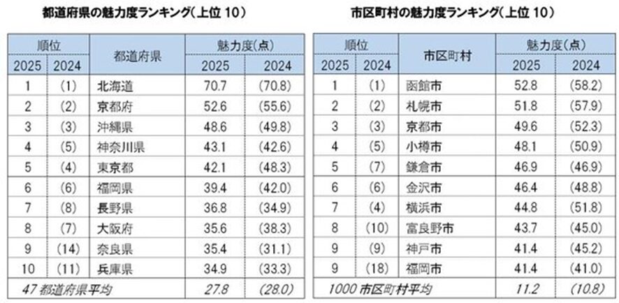 1位 地域ブランド調査2025:北海道が17年連続で最も魅力的な都道府県、神奈川県は初の4位にランクアップ
