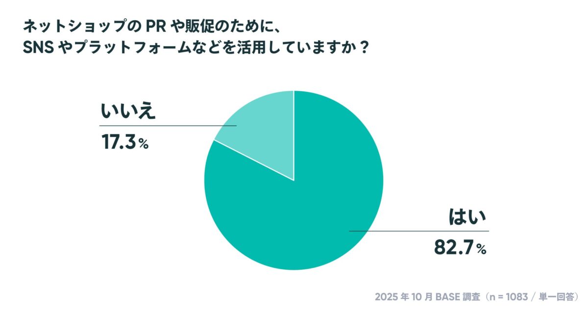 ネットショップのPRや集客・販促のためにSNSや動画プラットフォームを活用するショップは82.7%と高水準を維持しており、D2C(Direct to Consumer)ビジネスにおいて欠かせない存在となっています。