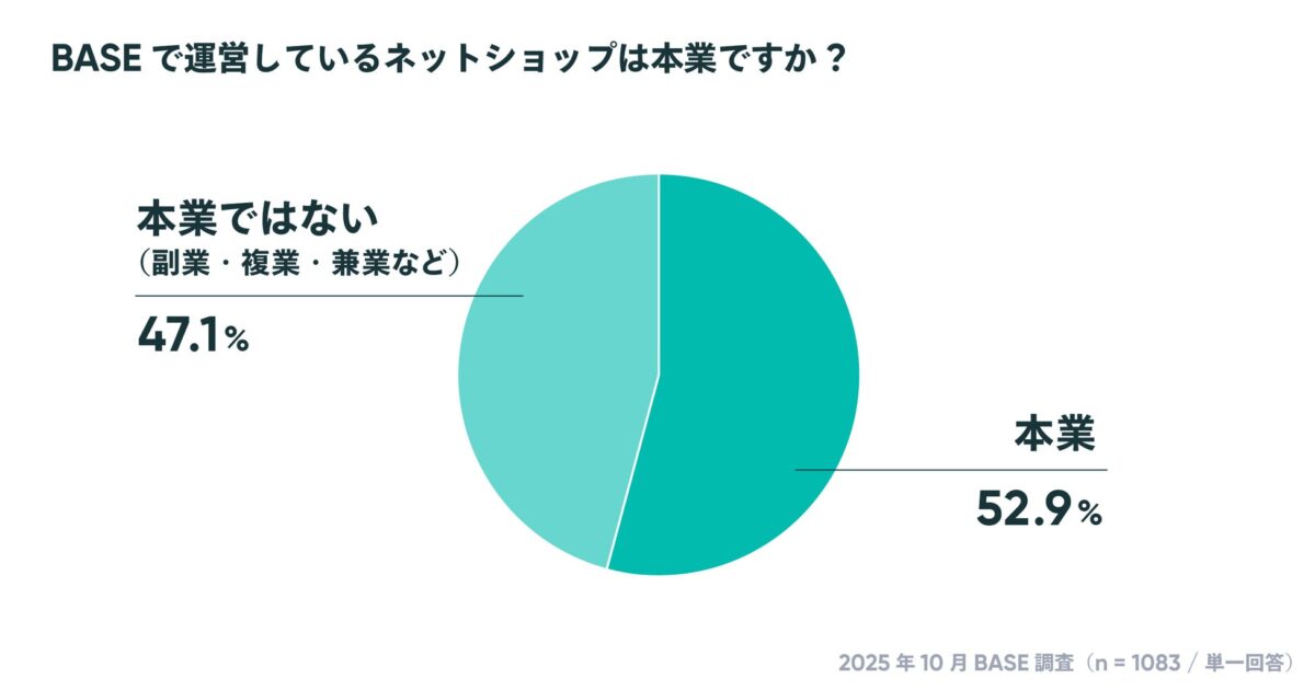 BASE株式会社が運営するネットショップ作成サービス「BASE(ベイス)」は、同サービスを利用するショップオーナーを対象にした「オーナーズ調査2025」を実施し、その結果を発表しました。この調査では、ネットショップの運営体制や開設資金、越境ECへの意欲、AI活用状況などが明らかになっています。