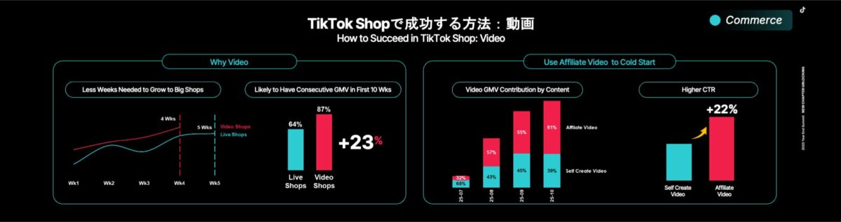 TikTok Shopの売上は特に好調で、月次で200%以上の成長を記録したケースも報告されています。特にコスメやアパレル、電気製品など、動画やLIVE配信コンテンツとの相性が良いカテゴリが人気を集めており、TikTokが購買決定の重要な起点として活用されるフェーズが本格化しているとのことです。