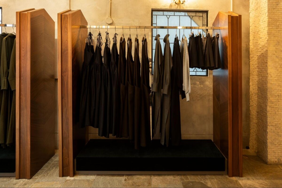 また、foufouの服の特徴である重厚さと繊細さを引き立てるために、オリジナルの什器も制作。布量が多くデザイン性の高いfoufouの服が最も美しく見えるよう、細部までこだわった設計となっています。