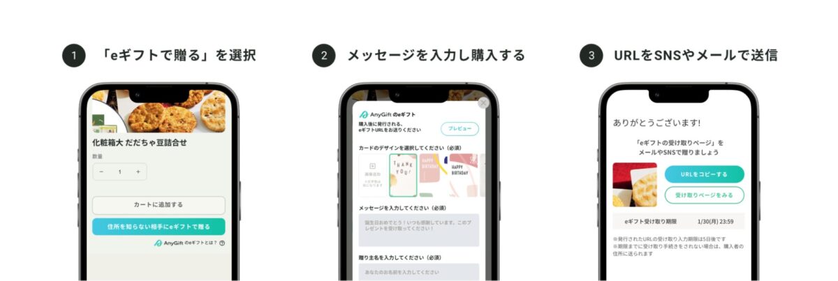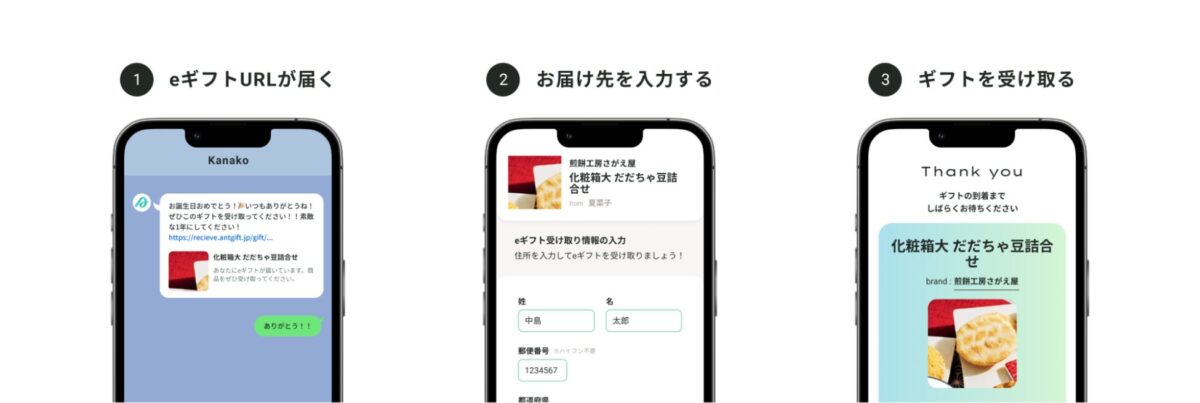 eギフトURLから住所を入力いただくだけで対象商品が届きます