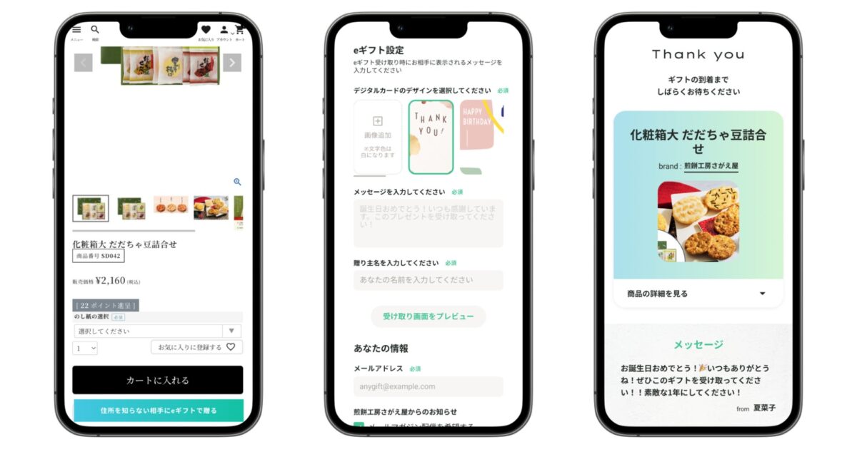 eギフト機能を通じて、より多くの方に煎餅工房さがえ屋の商品が届く機会を提供することを目指しているようです。