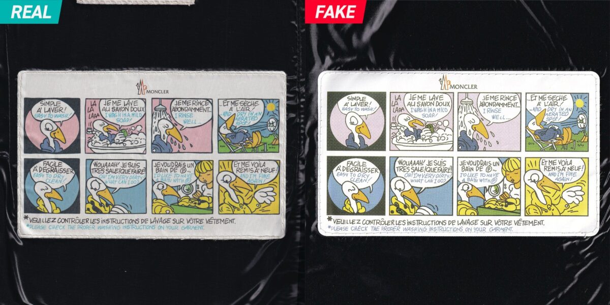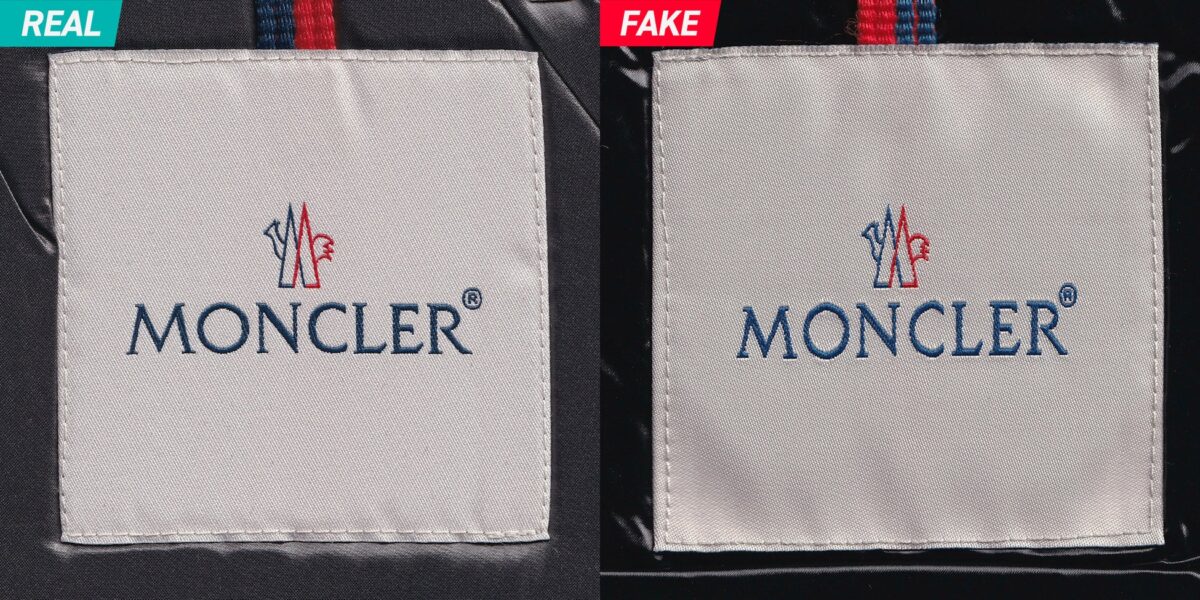 真贋ポイントとして、ブランドロゴの再現精度に顕著な特徴が見られます。書体では、正規品は「MONCLER」のO・C・Eの曲線や文字の間隔(カーニング)が正確である一方、偽造品ではOの潰れ、Cの開きの不均一さ、Eの線の歪みなど字形の癖が表れやすい傾向があります。