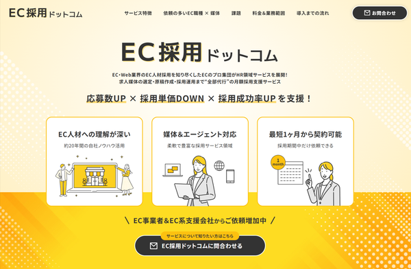 同社はECソリューション支援で蓄積した「EC業界」の人材知見とデータを活かし、EC企業の採用活動を"事業成長の観点で"支援していくとのことです。