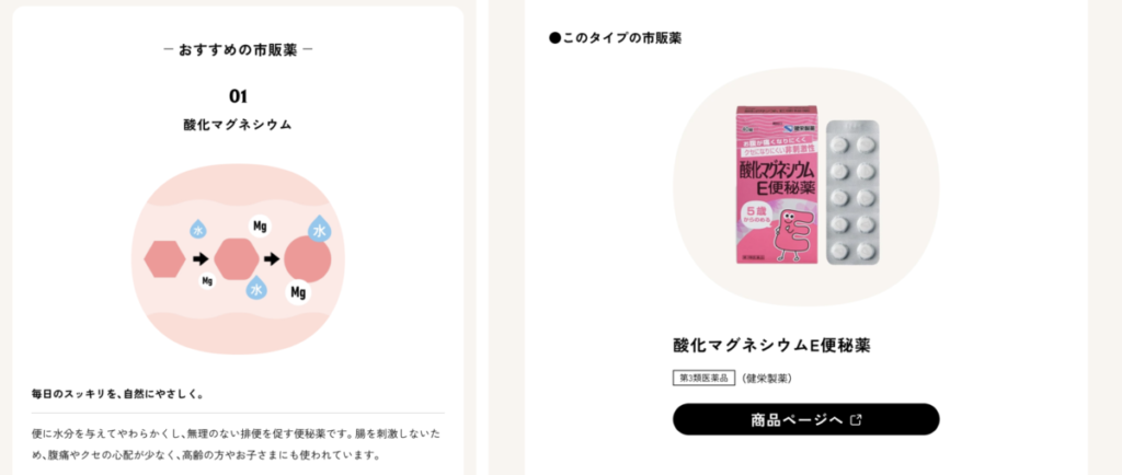 診断結果に基づいて、適切な市販薬(例:酸化マグネシウムなど)を提案・販売。