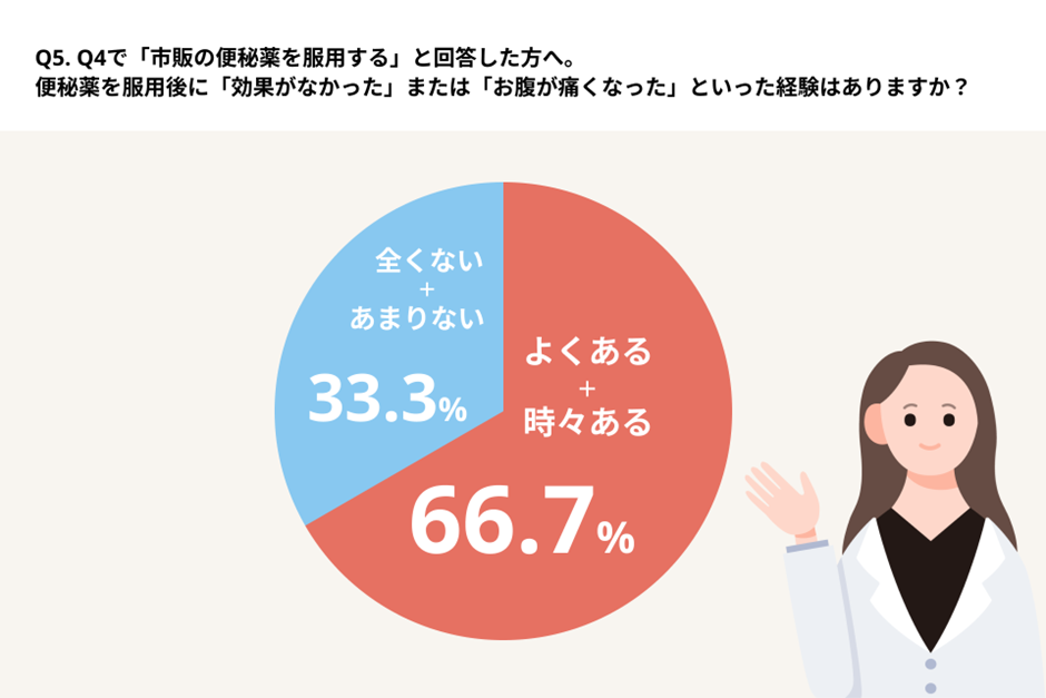 ・便秘薬を使用した人の約7割が「効かなかった」「お腹が痛くなった」といった”薬のミスセレクト”を経験しており、適切な薬選びができていない