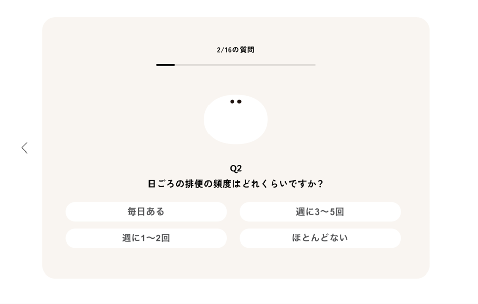 自治医科大学消化器内科 講師 井野 裕治先生の監修のもと、生活習慣・体質・症状を反映した最大16問の設問に回答することで、ご自身の「便秘タイプ」を把握できます。