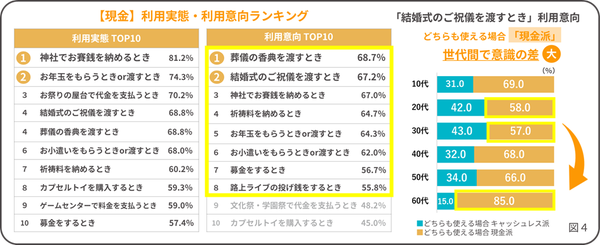 <現金>利用実態・利用意向ランキング!冠婚葬祭が上位、「お金を贈るシーン」に現金需要