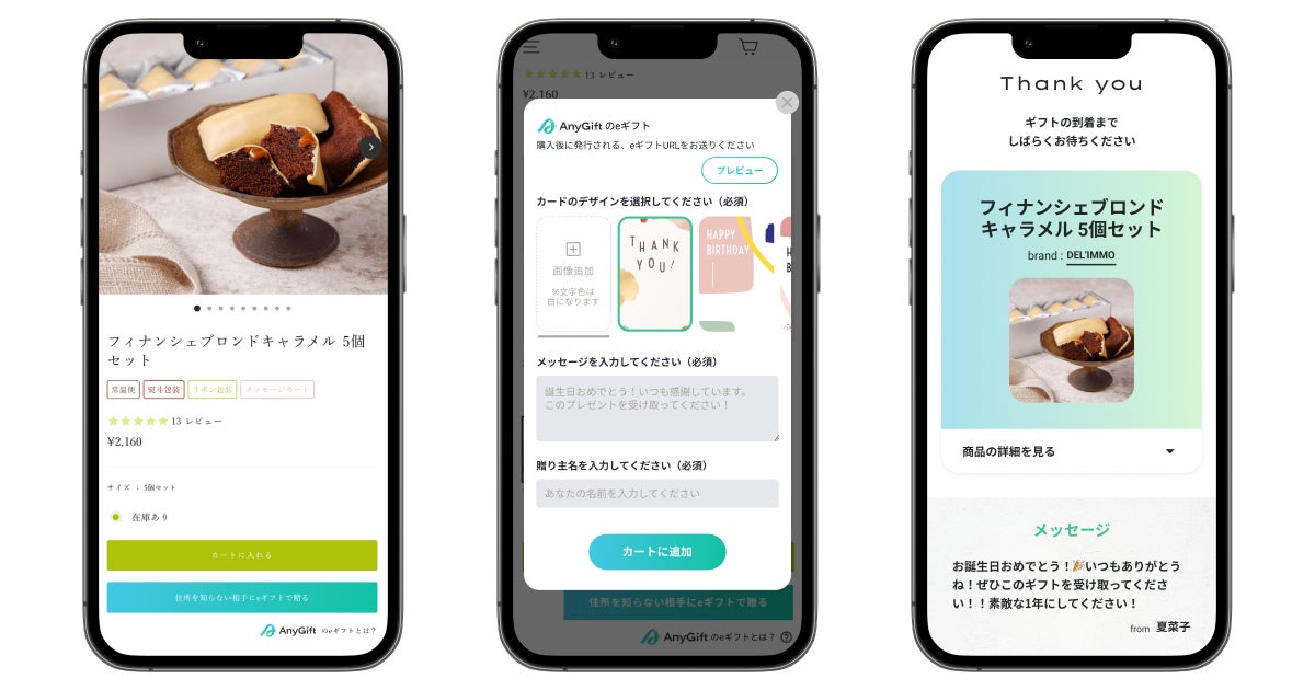 そこで同社は、より自由に、より気軽に、そして"思い立ったその瞬間"に大切な人へ想いを届けてほしいという強い思いから、今回の"AnyGift"導入を決定しました。