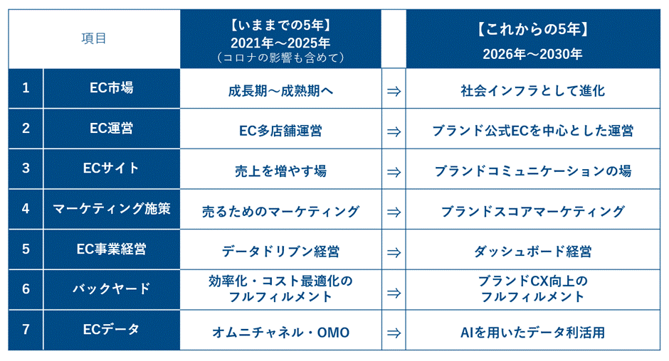 こうした変化を踏まえ、2026年は2030年を見据えた「EC事業の次の姿」を描き直し、戦略を再定義する重要な一年になると提言しています。
