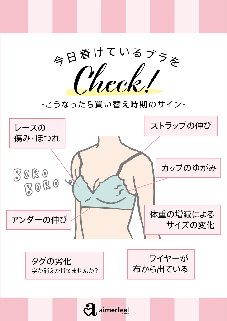 同社では、"今のからだに合っているか"を定期的にチェックしながら、状態に応じて買い替えを行うことを推奨しています。伸びや型崩れ、フィット感の低下といった、買い替え時期を示すサインが見られる場合には、新しいブラジャーへの買い替えを推奨しています。