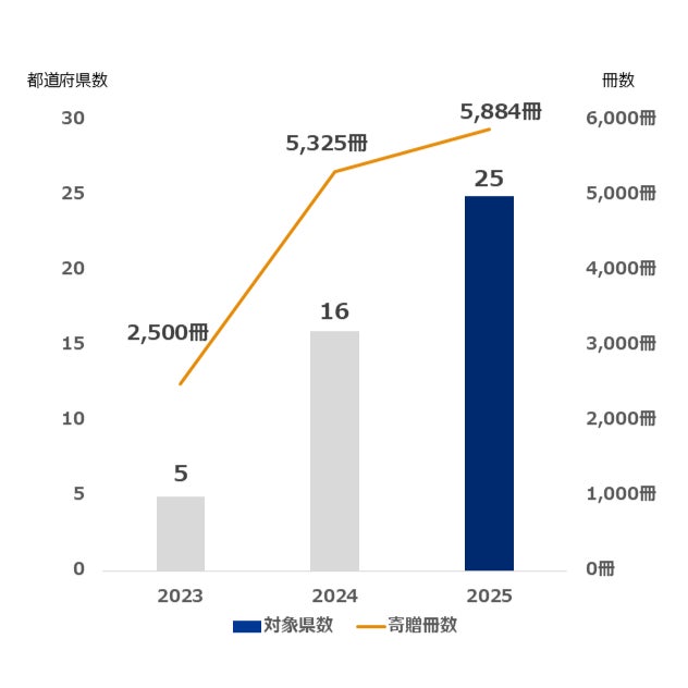 一次市場における出版数量はダウントレンドにある中でも、国内ブックオフ事業直営既存店における書籍の商材別売上高は前年比102.4%となっており、現在も顧客から本が求められている状況です。ブックオフでは、一定期間で販売しきれず処分されてしまう本や買取時にお値段が付かず、顧客の了承のもとでお引き取りした本を廃棄せずに活用し、子どもの読書機会を創出するとともに地域の読書機会格差解消を目的に寄贈する活動「サステナブックプロジェクト」が今期も実施されました。プロジェクト期間中に対象店舗にて顧客から買取した書籍の点数に応じて算出した寄付額に相当する中古本を、本を必要とする児童施設などに対して寄贈する仕組みです。対象地域は図書館の設置数が全国平均以下を中心とした道府県で、2023年の開始以来、対象地域や寄贈冊数を拡大し続けています。今後も、読み終えた書籍の寿命を延ばすことにより廃棄を削減できることに加え、店舗の利用から誰でも無理なく気軽に社会貢献活動に参加できる取り組みを通じて持続可能な社会を実現していく方針です。