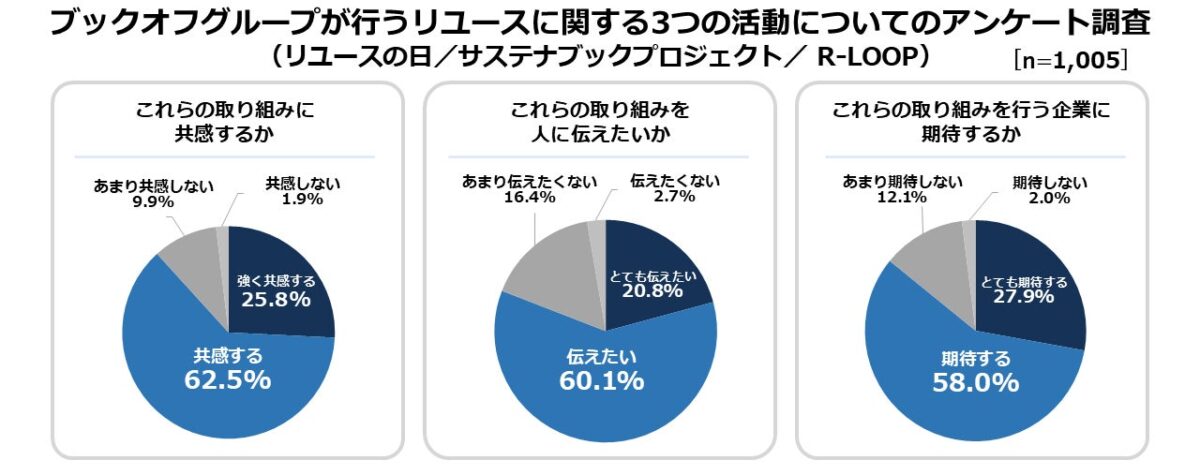 リユースに関する活動に対して「共感」「伝達意向」「期待」の全てにおいて8割以上という高い評価を生活者から獲得しており、リユースを身近にするための取り組みがブランド価値の向上や企業への期待につながっていることが確認されています。今後も事業を通じたこれらの取り組みをさらに拡大することで、リユースに対するイメージをポジティブなものへと転換し、業界全体を推進するとともに、サーキュラーエコノミーの実現を目指していく考えです。