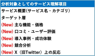 今回実施されたアップデートでは、口コミ・導入事例・競合情報・SNSトレンドにまで収集範囲を広げることで、分析精度を大幅に向上させることに成功したとのことです。