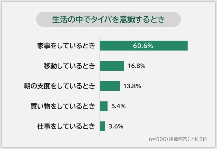 タイパは特別なシーンではなく、家事や朝の支度といった日常生活の中で頻繁に意識されていることがわかりました。