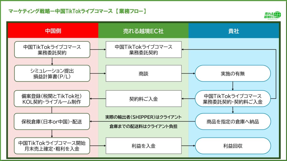 まず本プランによって「中国市場での勝ち筋(売れる条件)」を検証し、その結果を踏まえた上で、一般貿易展開やオフライン展開など、次の成長フェーズへ段階的に移行するロードマップを支援する考えです。