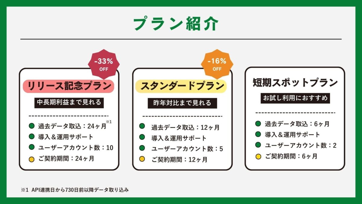 事業規模や運営体制に応じて、複数のプランが用意されています。