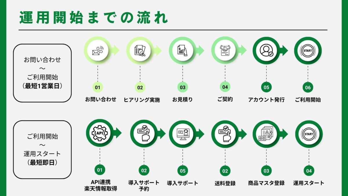 問い合わせから最短1営業日で利用開始が可能となっています。
