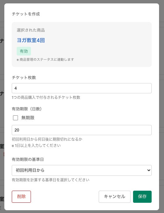 2つ目は、使いやすい商品管理機能です。Shopifyの管理画面から簡単に回数券商品の作成・管理を行うことができます。チケットの枚数や有効期限についても柔軟に設定することが可能です。