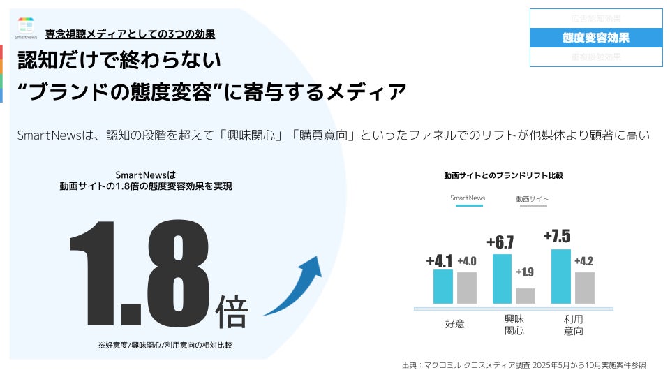 - 動画メディアと比較して最大1.8倍の態度変容効果