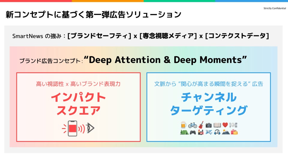 スマートニュース株式会社は今後も、「Deep Attention & Deep Moments」というコンセプトのもとで、信頼性の高い情報環境と「専念視聴メディア」としての特性を活かしていくとしています。広告がきちんと見られ、理解される接触の実現を目指すとともに、「インパクトスクエア」や「チャンネルターゲティング」をはじめとする広告プロダクトの進化を通じて、広告主のブランド体験の深化とマーケティング成果の最大化を支援していく方針です。