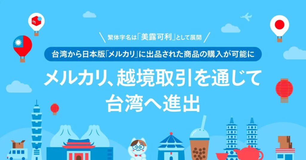 業界情報・プレスリリース メルカリ メルカリ、越境取引を通じて台湾へ進出〜台湾から日本版「メルカリ」に出品された商品の購入が可能に。繁体字名は「美露可利」として展開〜 2024年8月29日 株式会社メルカリ(以下:メルカリ)は、2024年8月29日より、グローバル戦略の一環として「越境取引」を通じて台湾へ進出いたしますので、お知らせいたします。本日より台湾に...