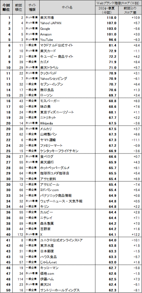 業界情報・プレスリリース 日経BPコンサルティング 【Webブランド調査2024-春夏】総合編は「楽天市場」が首位に返り咲き 一般企業サイト編のトップ3は、「マクドナルド公式サイト」 「キユーピー 商品サイト」「カゴメ」 2024年6月20日 株式会社日経BPコンサルティング(東京都港区)は、3万人以上のネットユーザーが国内500のサイトを評価する「Webブランド調査2024-春夏」の結果をまとめた。Webサイ...